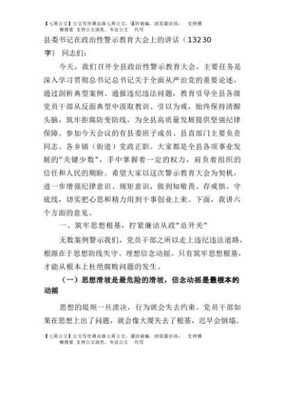 【七哥公文】2025年:县委书记在政治性警示教育大会上的讲话(13230字)+更多免费公文+VX:QiGeGongWen2024
