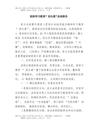 / 【七哥公文】2025年:医院学习教育“回头看”总结报告+更多免费公文+VX:QiGeGongWen2024