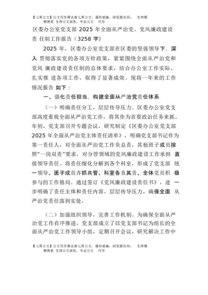 【七哥公文】2025年:区委办公室党支部2025年全面从严治党、党风廉政建设责任制工作报告(3258字)+更多免费公文+VX:QiGeGongWen2024