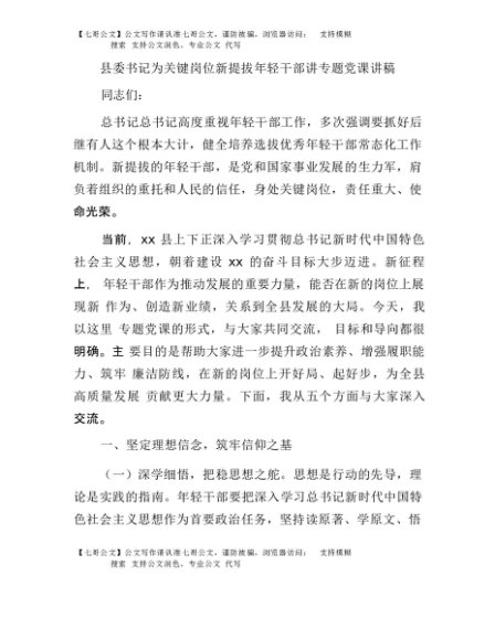 / 【七哥公文】2025年:县委书记为关键岗位新提拔年轻干部讲专题党课讲稿+更多免费公文+VX:QiGeGongWen2024