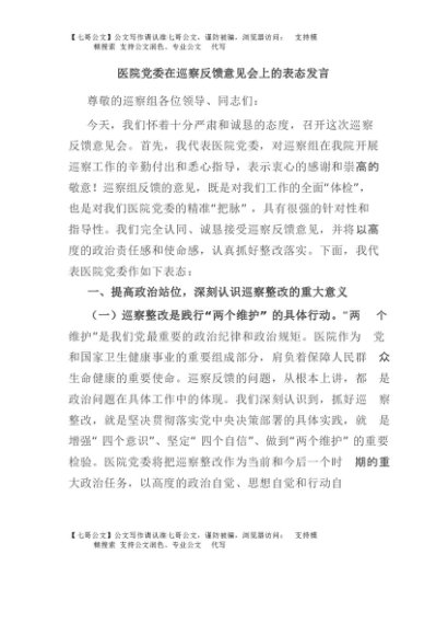 / 【七哥公文】2025年:医院党委在巡察反馈意见会上的表态发言+更多免费公文+VX:QiGeGongWen2024