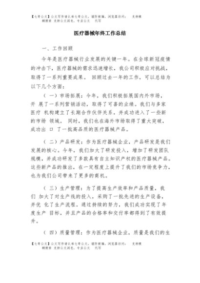 / 【七哥公文】2025年:医疗器械年终工作总结+更多免费公文+VX:QiGeGongWen2024