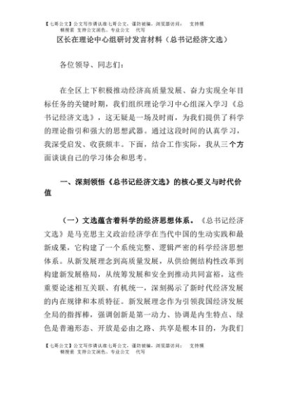 / 【七哥公文】2025年:区长在理论中心组研讨发言材料(总书记经济文选)+更多免费公文+VX:QiGeGongWen2024