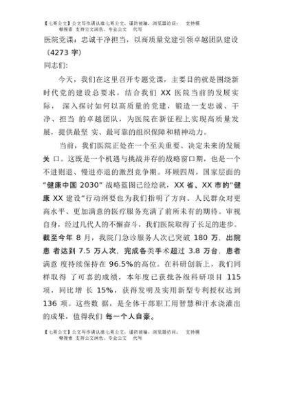 【七哥公文】2025年:医院党课:忠诚干净担当,以高质量党建引领卓越团队建设(4273字)+更多免费公文+VX:QiGeGongWen2024