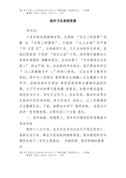 【七哥公文】2025年:医疗卫生系统党课+更多免费公文+VX:QiGeGongWen2024