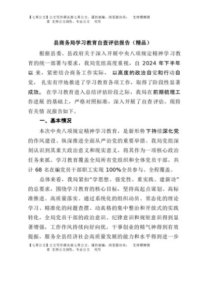 / 【七哥公文】2025年:县商务局学习教育自查评估报告(精品)+更多免费公文+VX:QiGeGongWen2024