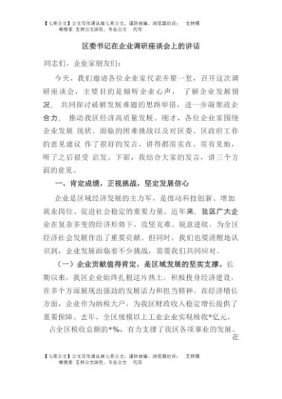/ 【七哥公文】2025年:区委书记在企业调研座谈会上的讲话+更多免费公文+VX:QiGeGongWen2024