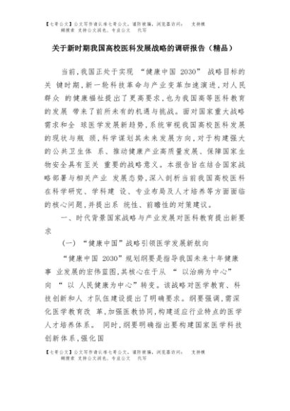 【七哥公文】2025年:关于新时期我国高校医科发展战略的调研报告(精品)+更多免费公文+VX:QiGeGongWen2024
