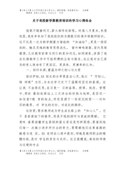 / 【七哥公文】2025年:关于我校新学期教师培训的学习心得体会+更多免费公文+VX:QiGeGongWen2024