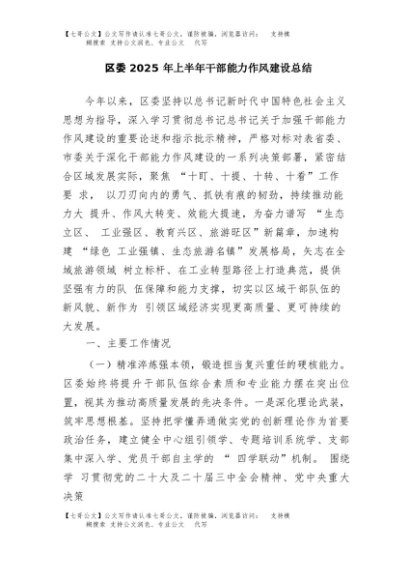 / 【七哥公文】2025年:区委2025年上半年干部能力作风建设总结+更多免费公文+VX:QiGeGongWen2024