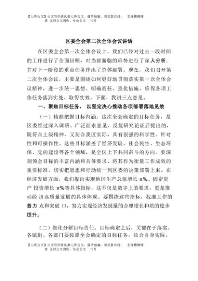/ 【七哥公文】2025年:区委全会第二次全体会议讲话+更多免费公文+VX:QiGeGongWen2024