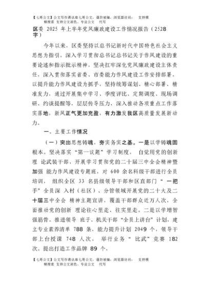 【七哥公文】2025年:区委2025年上半年党风廉政建设工作情况报告(2528字)+更多免费公文+VX:QiGeGongWen2024