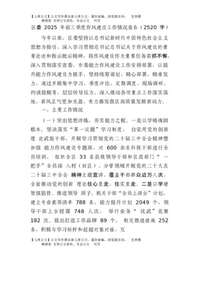 【七哥公文】2025年:区委2025年前三季度作风建设工作情况报告(2520字)+更多免费公文+VX:QiGeGongWen2024