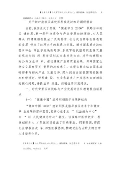 / 【七哥公文】2025年:关于新时期我国高校医科发展战略的调研报告+更多免费公文+VX:QiGeGongWen2024