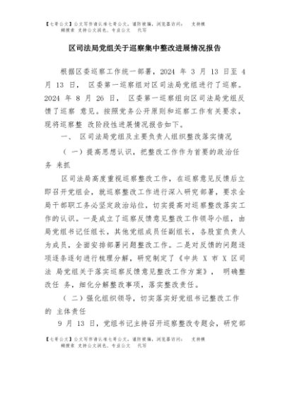 / 【七哥公文】2025年:区司法局党组关于巡察集中整改进展情况报告+更多免费公文+VX:QiGeGongWen2024