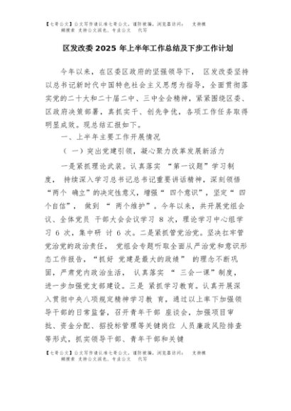 / 【七哥公文】2025年:区发改委2025年上半年工作总结及下步工作计划+更多免费公文+VX:QiGeGongWen2024