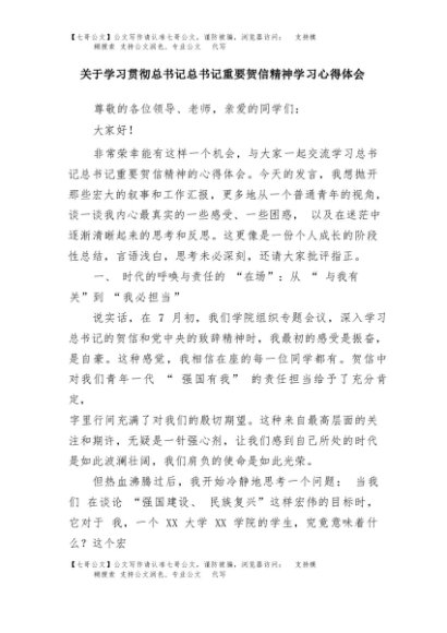 / 【七哥公文】2025年:关于学习贯彻总书记总书记重要贺信精神学习心得体会+更多免费公文+VX:QiGeGongWen2024