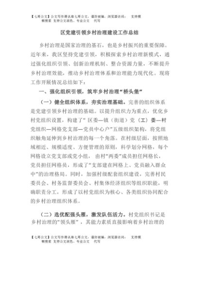 / 【七哥公文】2025年:区党建引领乡村治理建设工作总结+更多免费公文+VX:QiGeGongWen2024