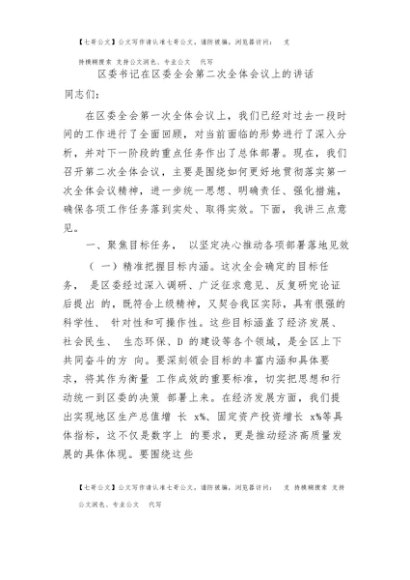 / 【七哥公文】2025年:区委书记在区委全会第二次全体会议上的讲话+更多免费公文+VX:QiGeGongWen2024