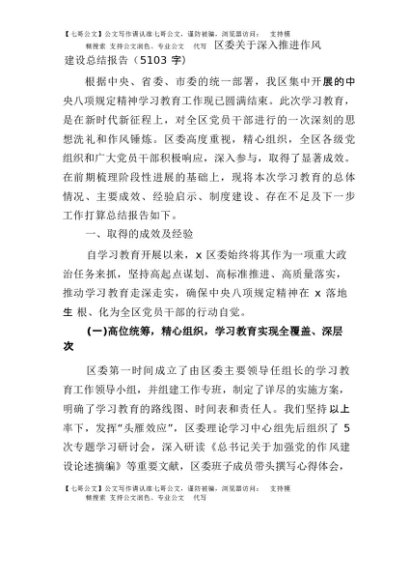 / 【七哥公文】2025年:区委关于深入推进作风建设总结报告(5103字)+更多免费公文+VX:QiGeGongWen2024