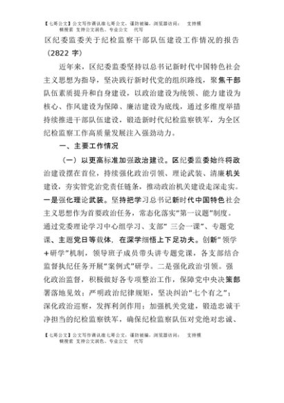 【七哥公文】2025年:区纪委监委关于纪检监察干部队伍建设工作情况的报告(2822字)+更多免费公文+VX:QiGeGongWen2024