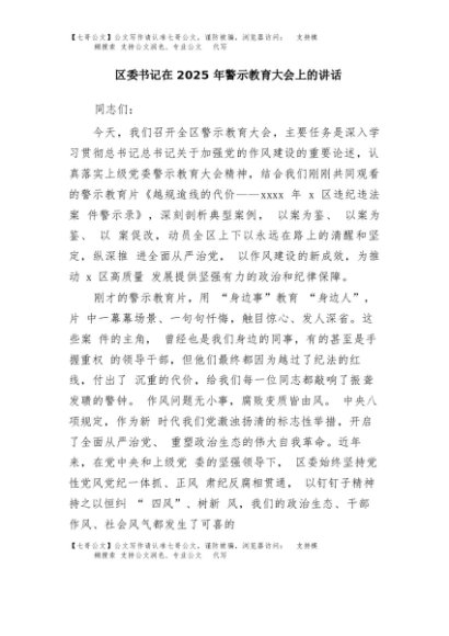 / 【七哥公文】2025年:区委书记在2025年警示教育大会上的讲话+更多免费公文+VX:QiGeGongWen2024