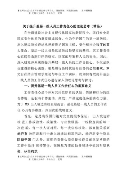 【七哥公文】2025年:关于提升基层一线人员工作责任心的理论思考(精品)+更多免费公文+VX:QiGeGongWen2024