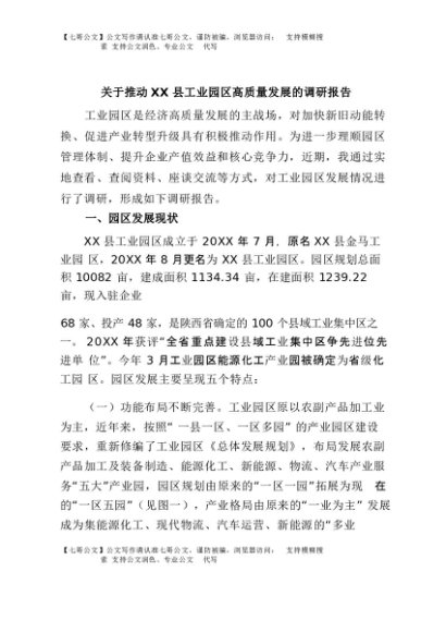 / 【七哥公文】2025年:关于推动XX县工业园区高质量发展的调研报告+更多免费公文+VX:QiGeGongWen2024
