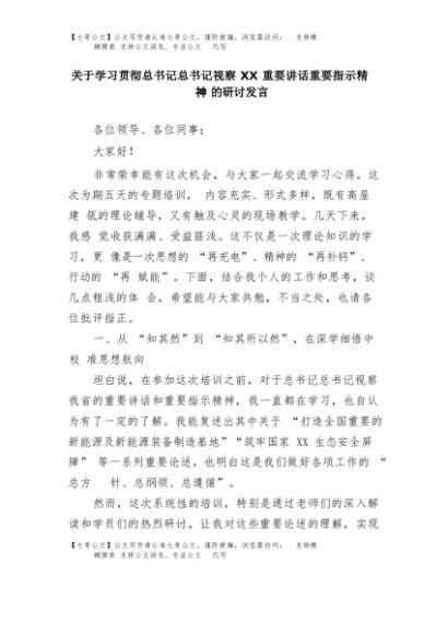 【七哥公文】2025年:关于学习贯彻总书记视察XX重要讲话重要指示精神的研讨发言+更多免费公文+VX:QiGeGongWen2024