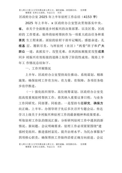 【七哥公文】2025年:区政府办公室2025年上半年驻村工作总结(4153字)+更多免费公文+VX:QiGeGongWen2024