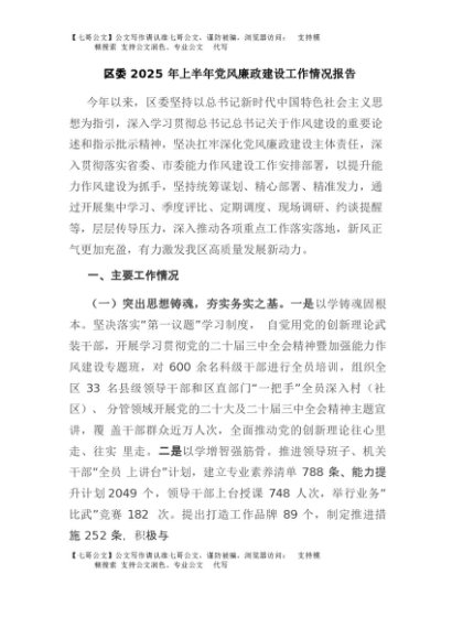/ 【七哥公文】2025年:区委2025年上半年党风廉政建设工作情况报告+更多免费公文+VX:QiGeGongWen2024