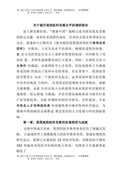 / 【七哥公文】2025年:关于提升高校医科发展水平的调研报告+更多免费公文+VX:QiGeGongWen2024