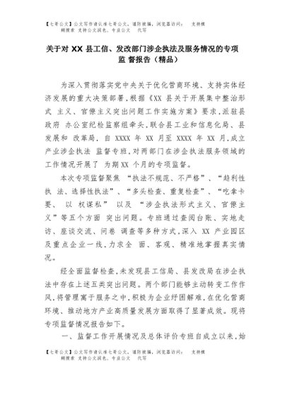 【七哥公文】2025年:关于对XX县工信、发改部门涉企执法及服务情况的专项监督报告(精品)+更多免费公文+VX:QiGeGongWen2024