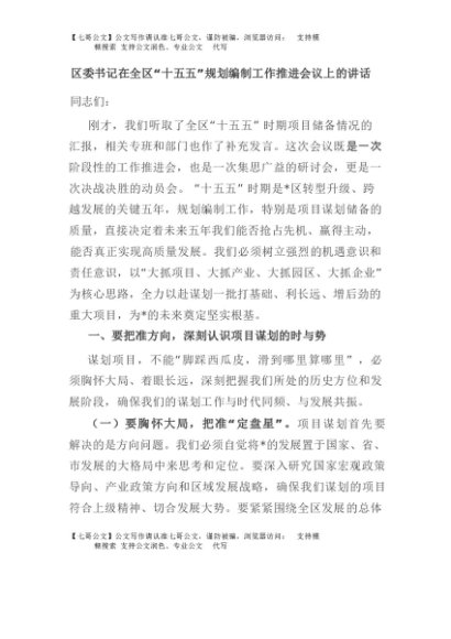 【七哥公文】2025年:区委书记在全区“十五五”规划编制工作推进会议上的讲话+更多免费公文+VX:QiGeGongWen2024