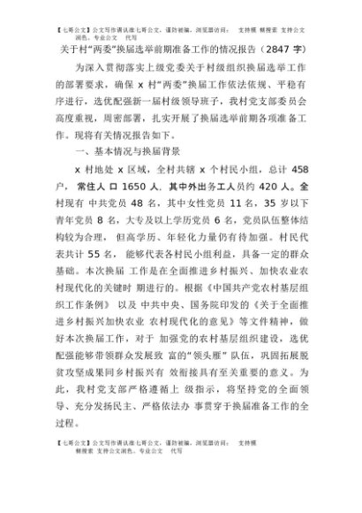 【七哥公文】2025年:关于村“两委”换届选举前期准备工作的情况报告(2847字)+更多免费公文+VX:QiGeGongWen2024