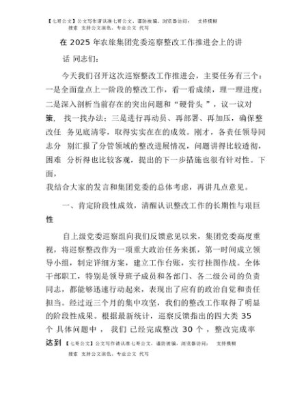 / 【七哥公文】2025年:农旅公司党委巡察整改工作推进会上的讲话+更多免费公文+VX:QiGeGongWen2024