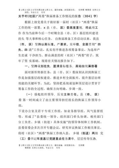 【七哥公文】2025年:关于村(社区)“两委”换届准备工作情况的报告(3841字)+更多免费公文+VX:QiGeGongWen2024