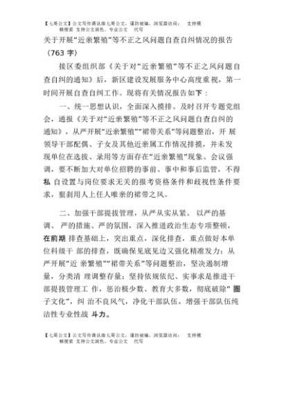 【七哥公文】2025年:关于开展“近亲繁殖”等不正之风问题自查自纠情况的报告(763字)+更多免费公文+VX:QiGeGongWen2024
