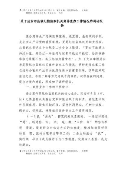 【七哥公文】2025年:关于延安市县级纪检监察机关案件查办工作情况的调研报告+更多免费公文+VX:QiGeGongWen2024