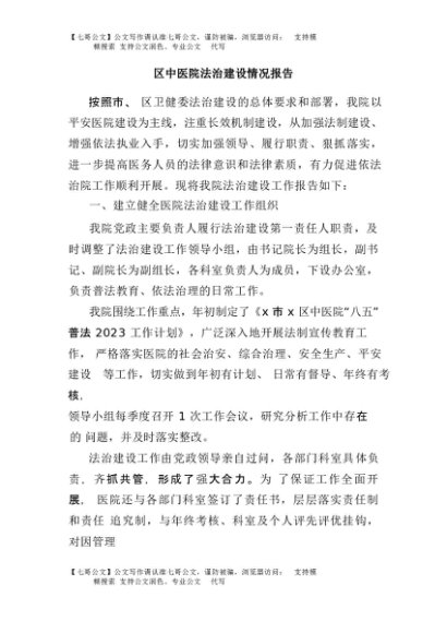 / 【七哥公文】2025年:区中医院法治建设情况报告+更多免费公文+VX:QiGeGongWen2024