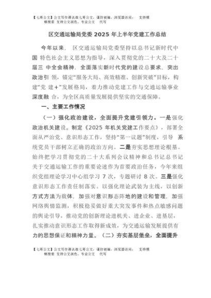 / 【七哥公文】2025年:区交通运输局党委2025年上半年党建工作总结+更多免费公文+VX:QiGeGongWen2024