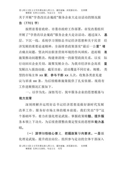 【七哥公文】2025年:关于开展“学查改·以企观政”服务企业大走访活动的情况报告(7701字)+更多免费公文+VX:QiGeGongWen2024