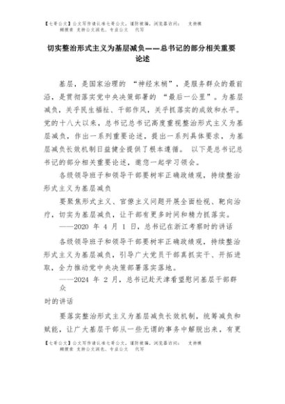 【七哥公文】2025年:切实整治形式主义为基层减负——总书记的部分相关重要论述+更多免费公文+VX:QiGeGongWen2024