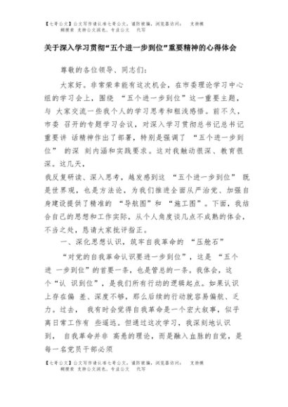 【七哥公文】2025年:关于深入学习贯彻“五个进一步到位”重要精神的心得体会+更多免费公文+VX:QiGeGongWen2024
