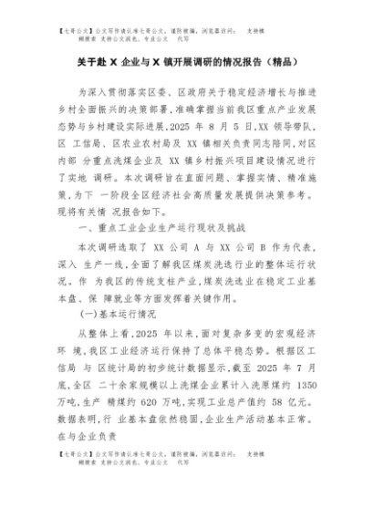 / 【七哥公文】2025年:关于赴X企业与X镇开展调研的情况报告(精品)+更多免费公文+VX:QiGeGongWen2024