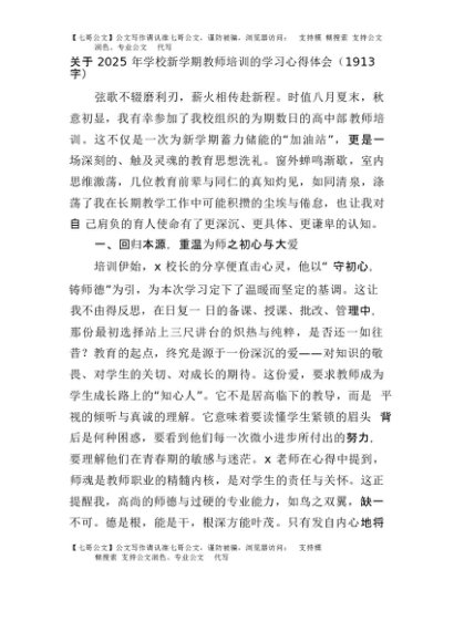 【七哥公文】2025年:关于2025年学校新学期教师培训的学习心得体会(1913字)+更多免费公文+VX:QiGeGongWen2024