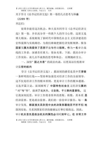 【七哥公文】2025年:关于学习《总书记经济文选》第一卷的几点思考与体会(2289字)+更多免费公文+VX:QiGeGongWen2024