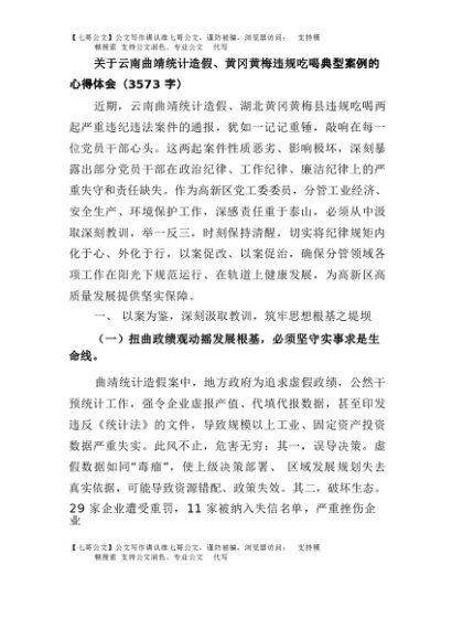 【七哥公文】2025年:关于云南曲靖统计造假、黄冈黄梅违规吃喝典型案例的心得体会(3573字)+更多免费公文+VX:QiGeGongWen2024