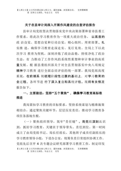 / 【七哥公文】2025年:关于在县审计局深入开展作风建设的自查评估报告+更多免费公文+VX:QiGeGongWen2024