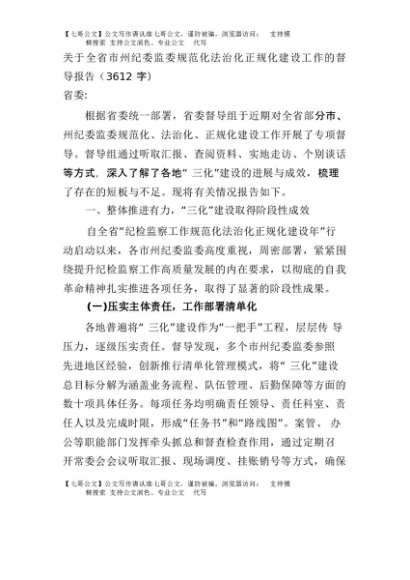 【七哥公文】2025年:关于全省市州纪委监委规范化法治化正规化建设工作的督导报告(3612字)+更多免费公文+VX:QiGeGongWen2024